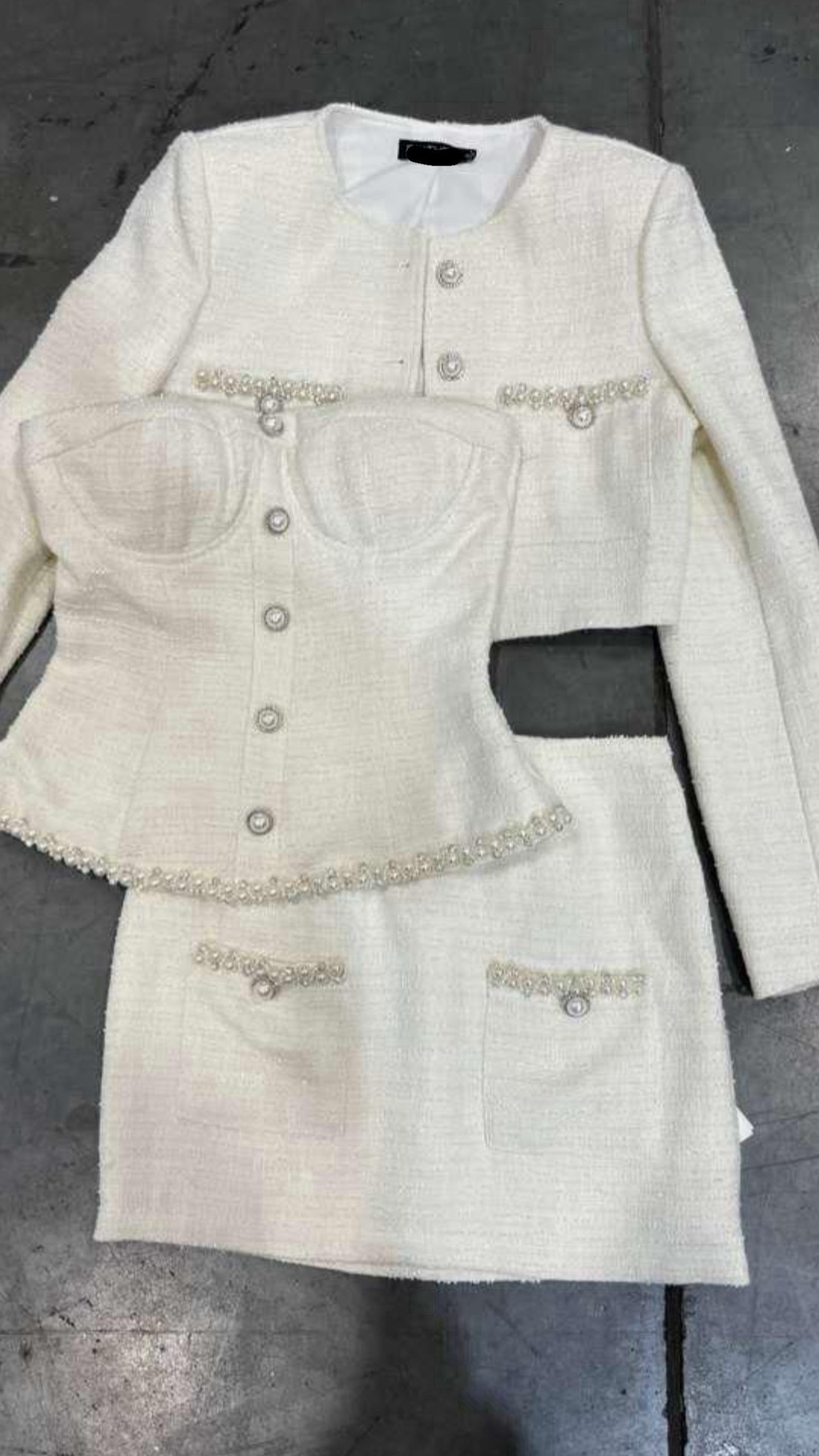 Lleva tu outfit al siguiente nivel. Luce impresionante con este set con piezas con detalles en perlas que le dan ese toque único.
