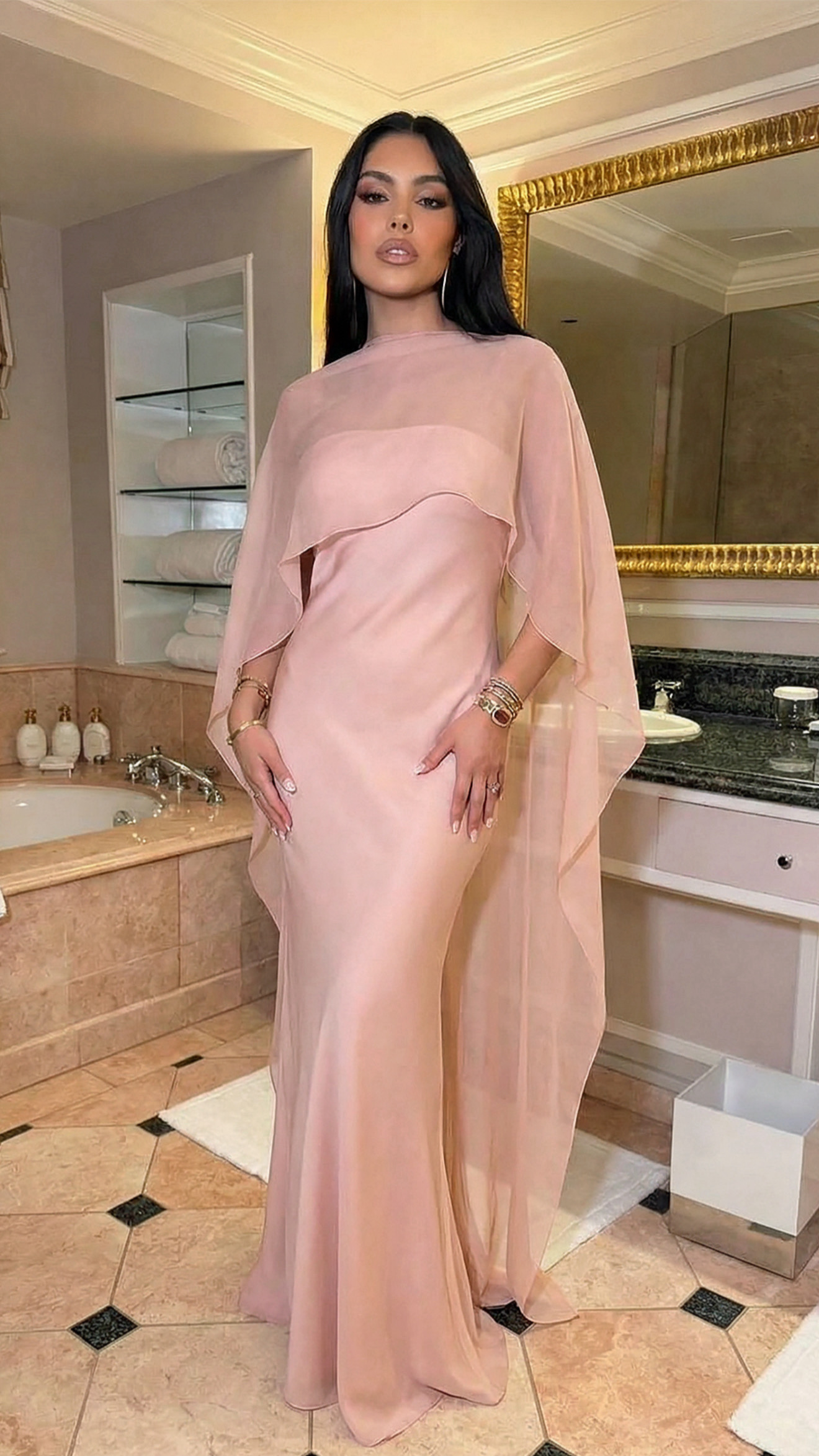 Maxi dress con capa.