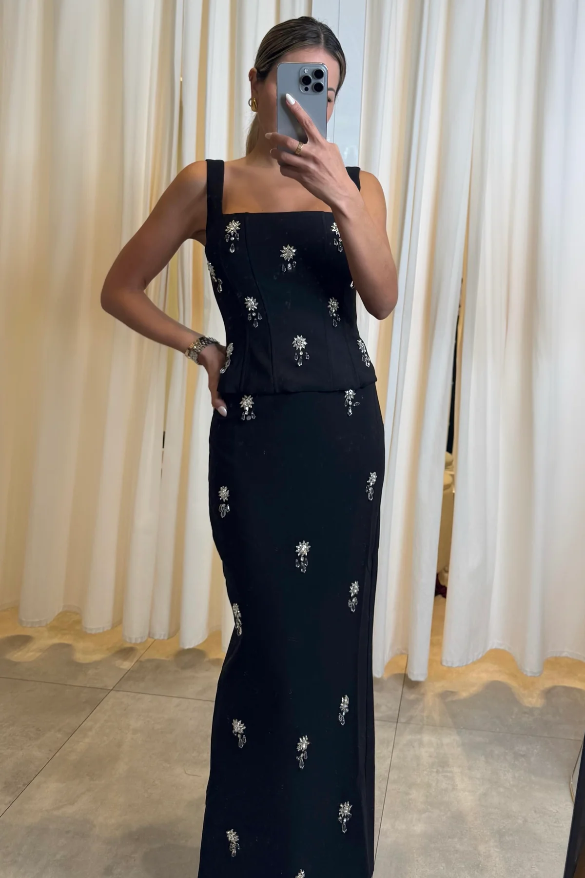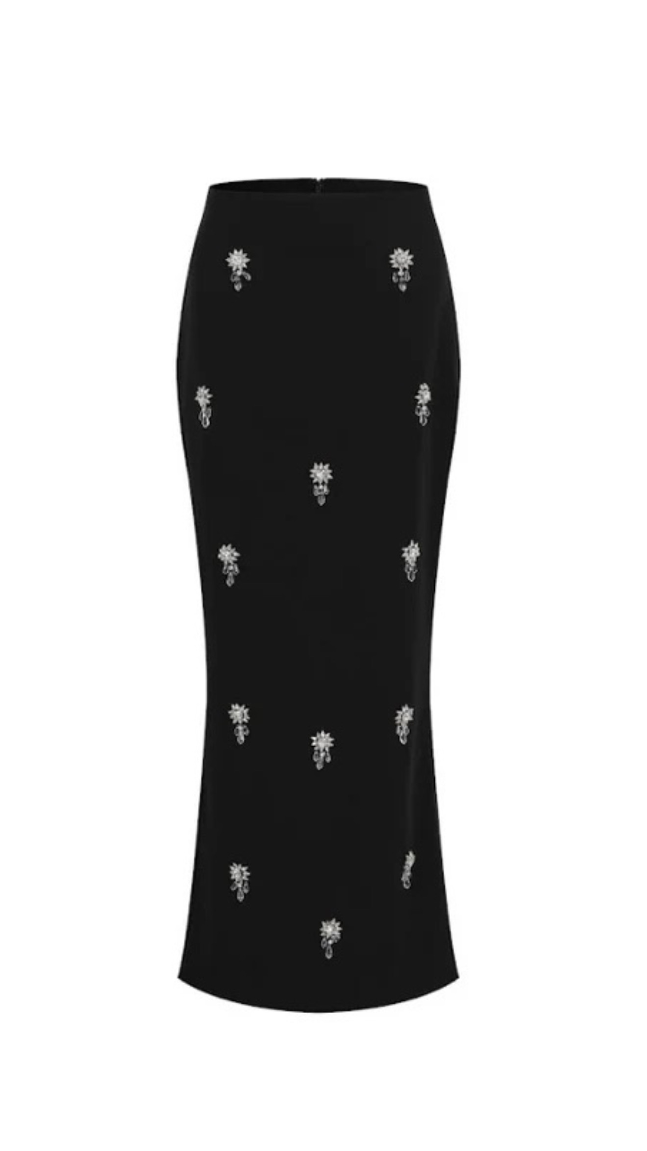 Woven Maxi Skirt with Embellished Rhinestones Skirt has Back Zipper and Back Slit COMPOSICIÓN: