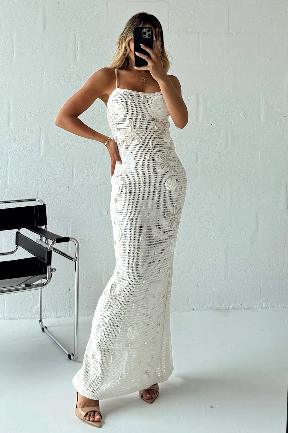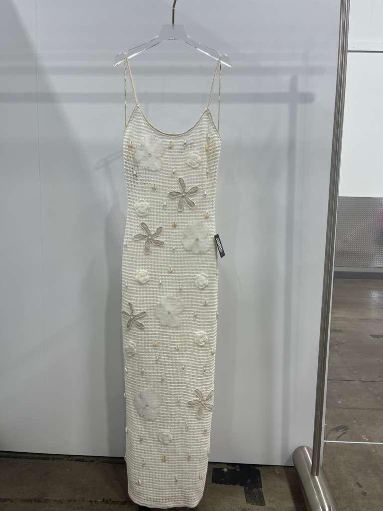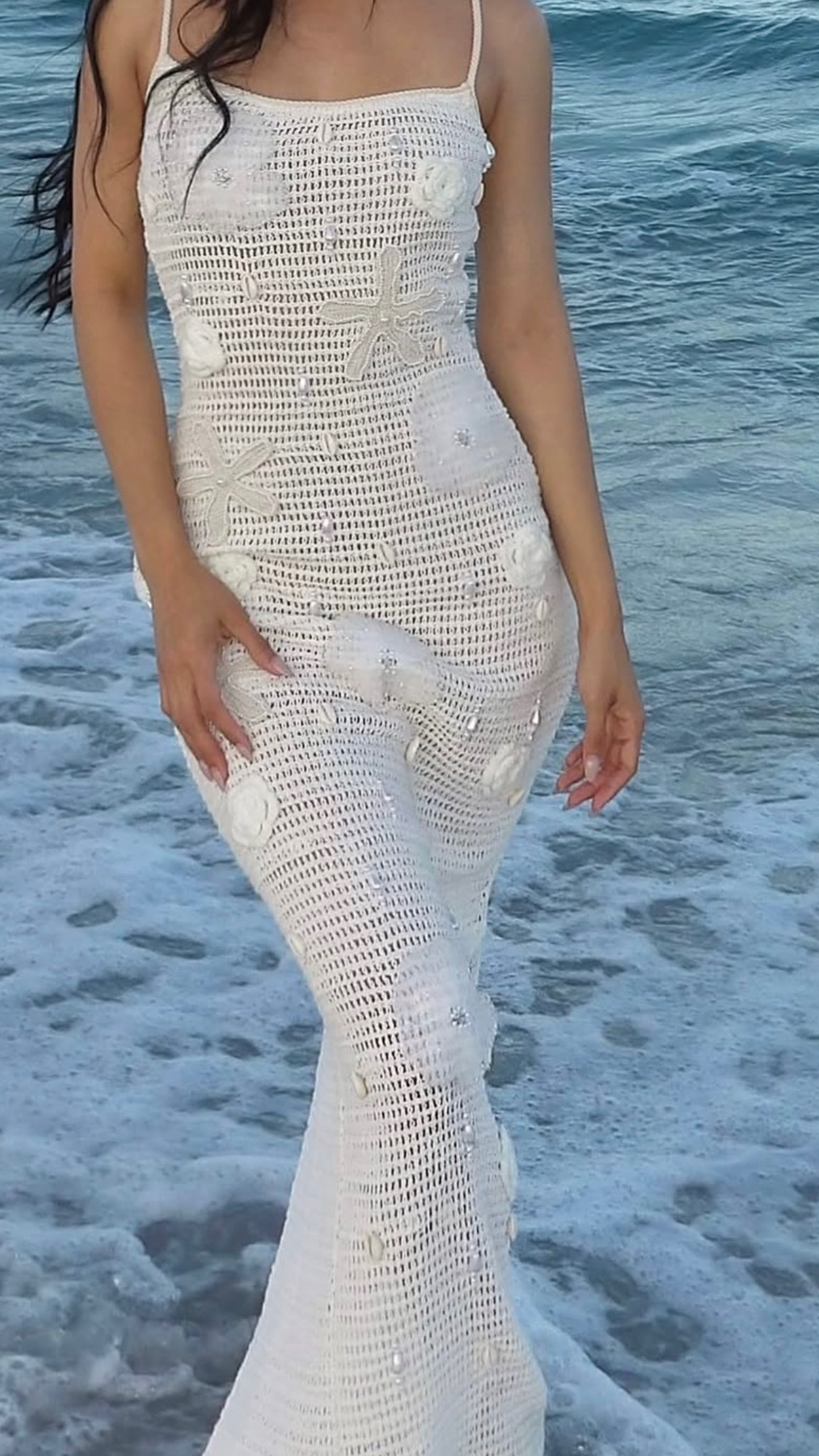 Crochet maxi dress with marine embroidery