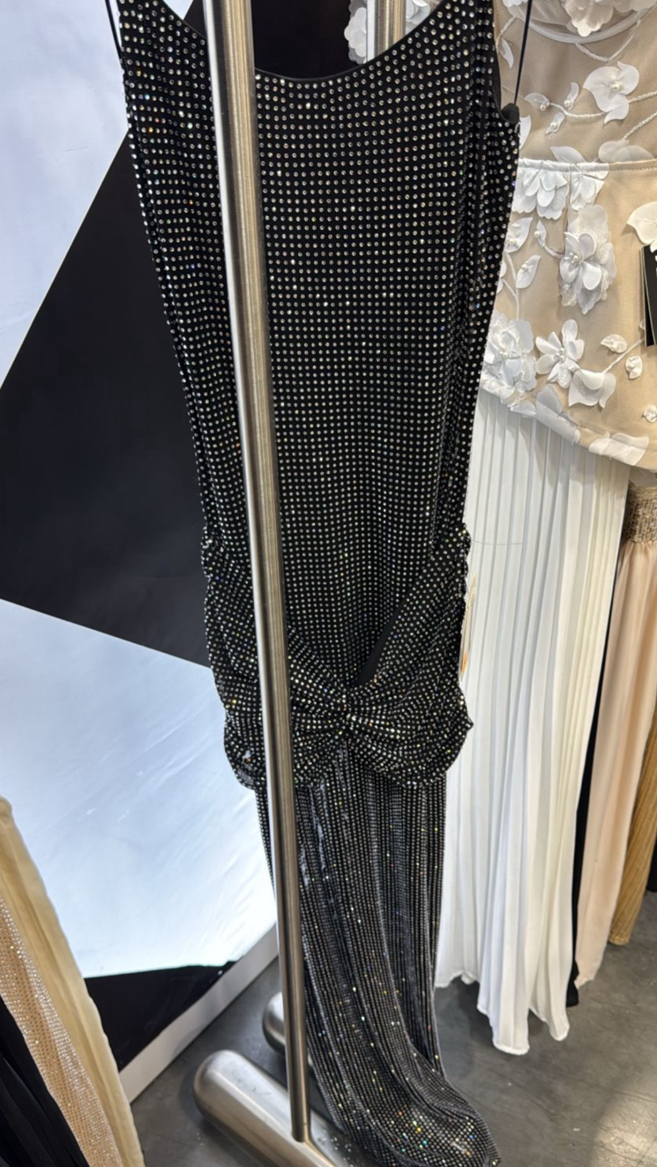 Vestido en color negro de base y brillantes de imitación.