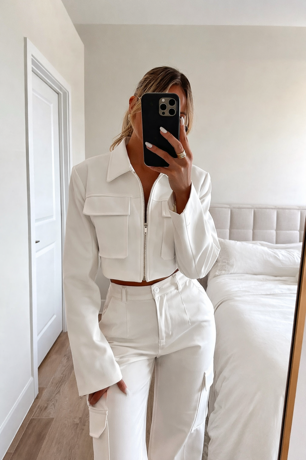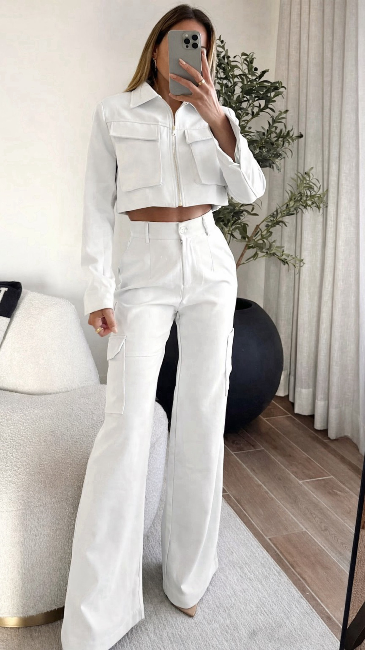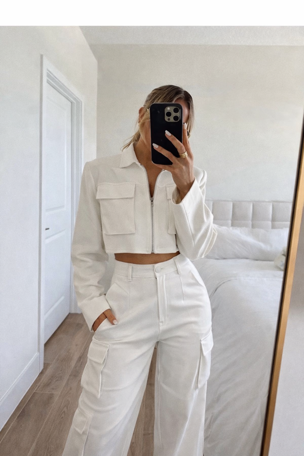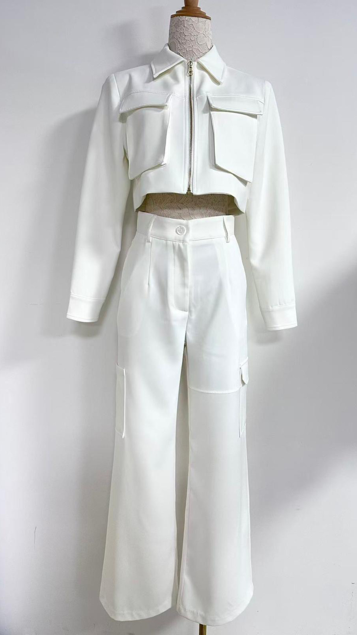 Set of cargo crop jacket and matching pants