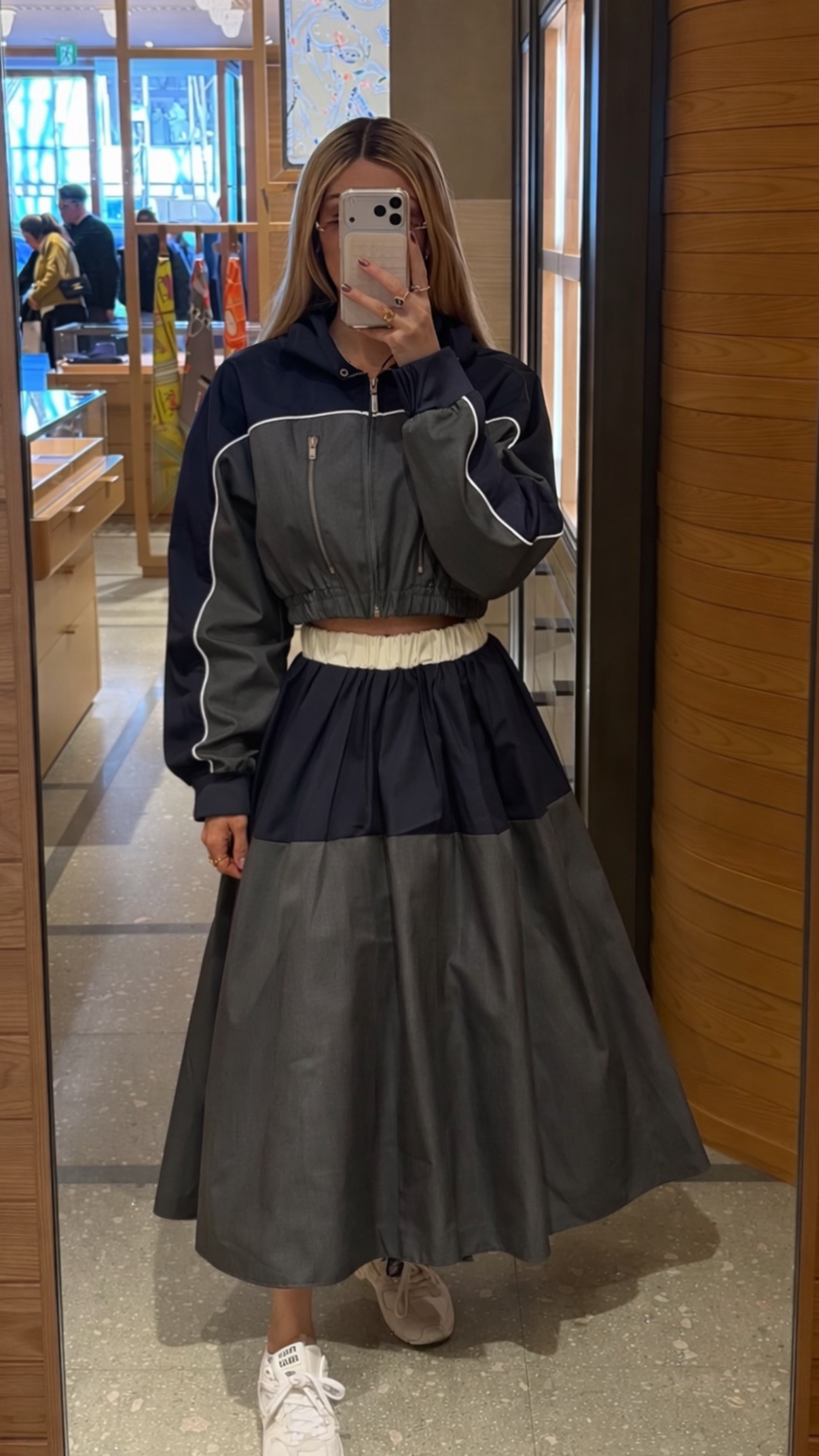 No hay nada que me fascine más que una prenda altamente femenina 🤍. Hablamos de este set de 2 piezas de bomber jacket, con cierre de zipper frontal y falda de talla alto.