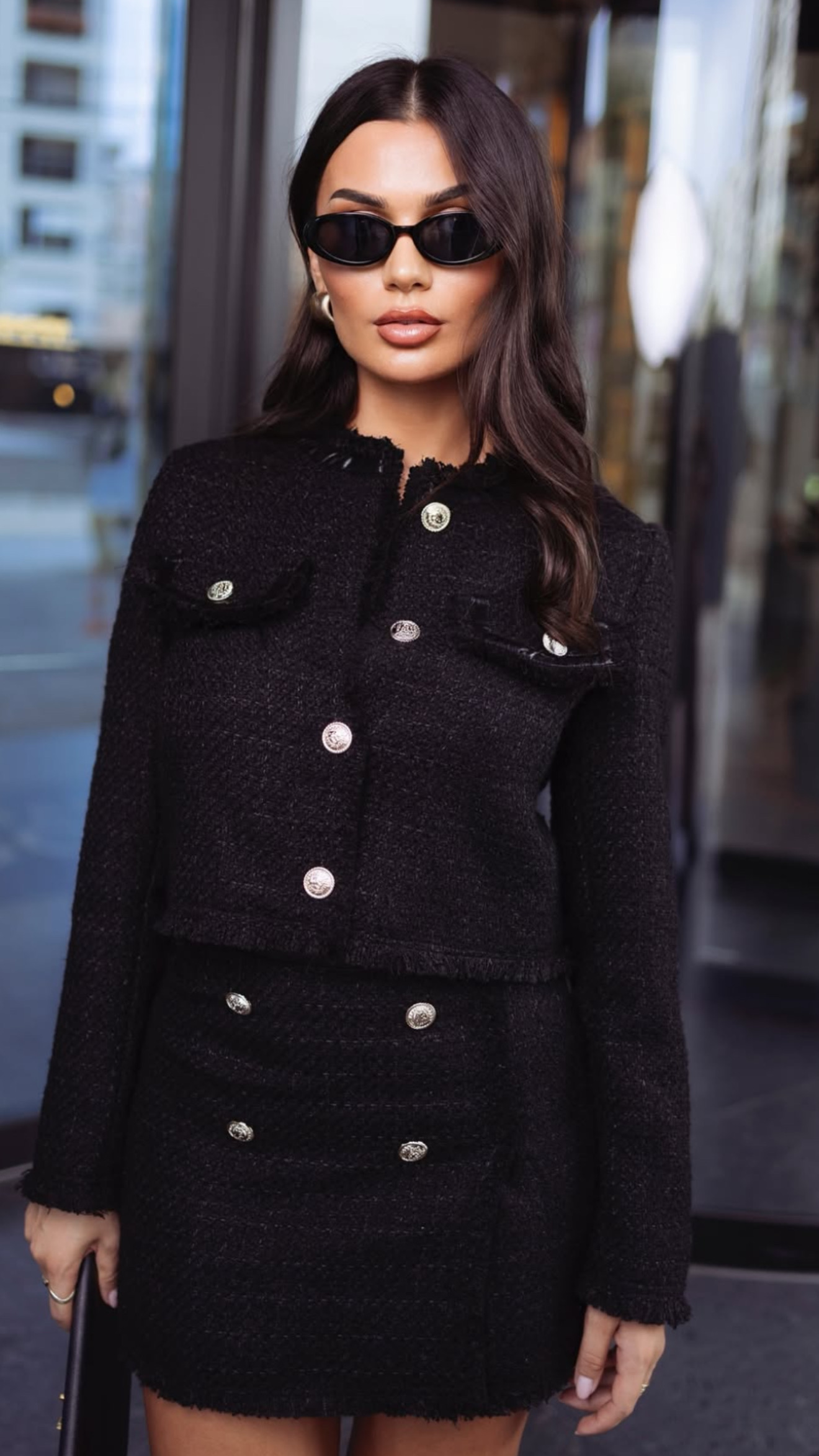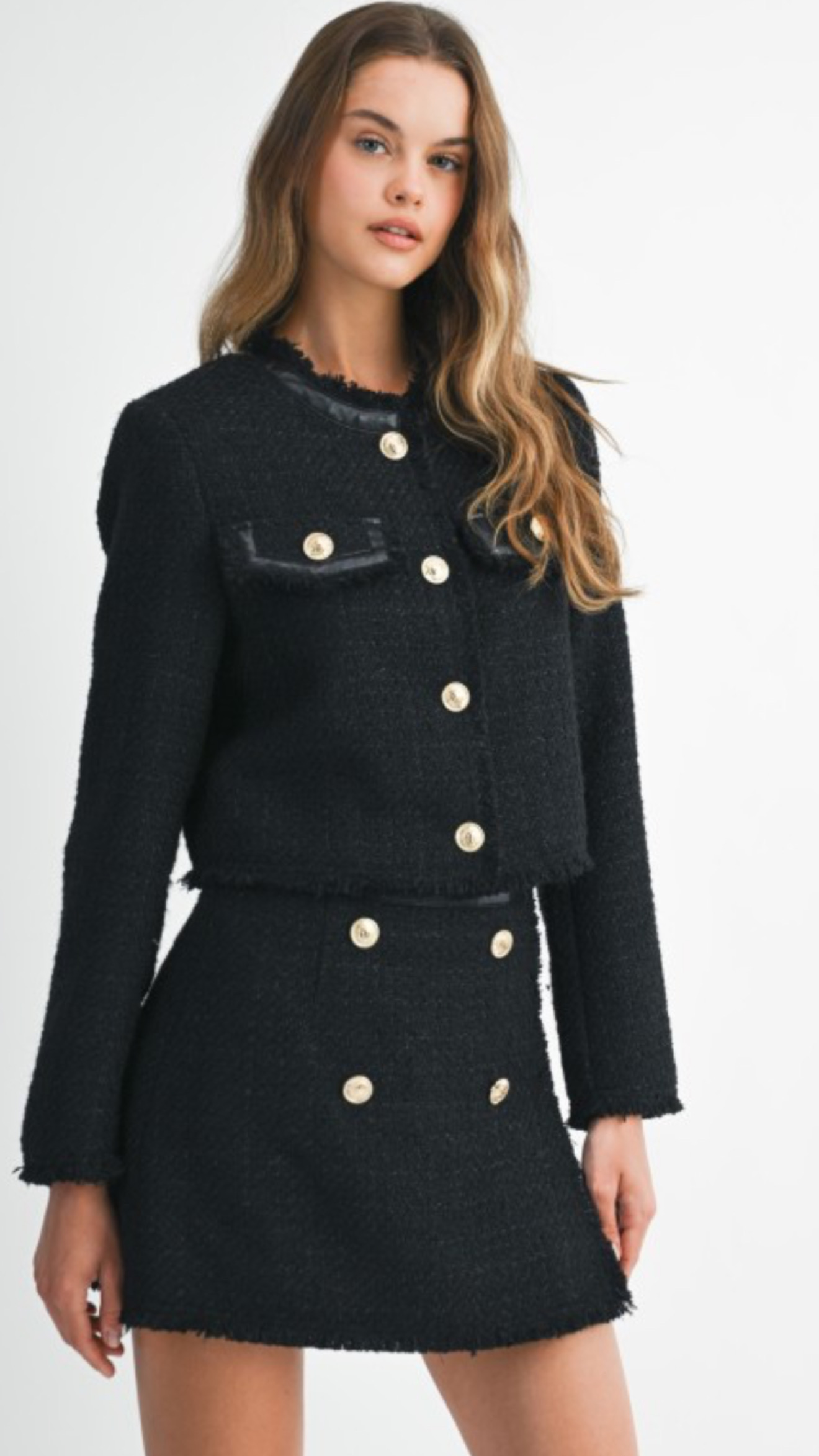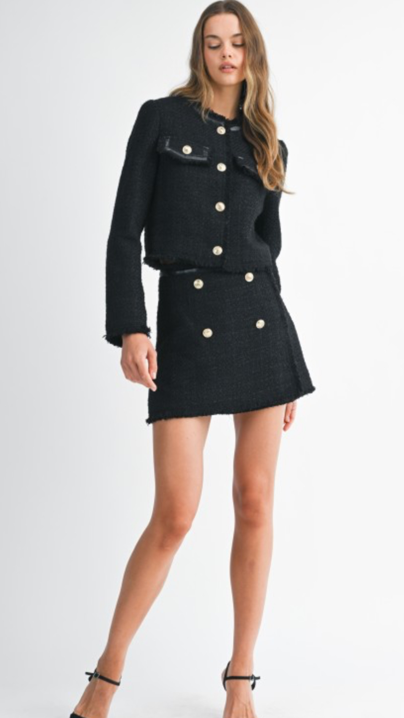 Set inspo Chanel en tela tweed, ambos con forro interno.